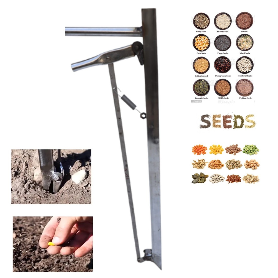 Brand: VGT INDIA Product Type: Seed Cum Fertilizer Dibbler Body Material : Stainless Steel Height : 3 feet Length : 32 inch Opening : 1 inch Capacity : 30 seeds/minute Weight: Approximately 2 Kg. Suitable For: All type of seed like Cotton, Corn, Groundnut, etc. Ideal For: The Seed‑cum‑Fertilizer Dibbler (SS) is a simple yet effective farming tool designed to help users sow seeds and apply fertilizer while standing upright. It features a long, hollow metal tube with a pointed or arrow-shaped tip that allows precise placement of seed and fertilizer into the soil.