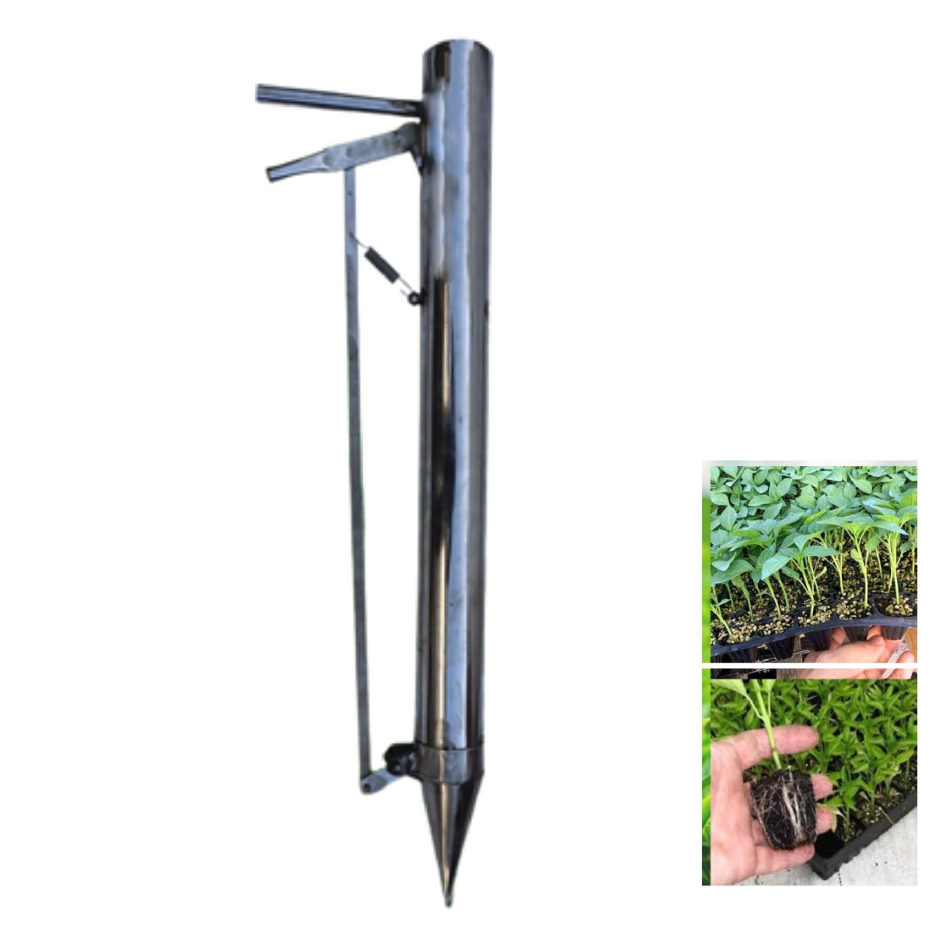 Brand: VGT INDIA Product Type: Single Cone Planter Body Material: Stainless Steel Length:-32 Inch Opening:- 3.5 Inch Attachment:- 3,12 inch blade Weight: Approximately 3 Kg. Working Speed:-25 seeding per minute Use: To transplant Direct Seeding from farm of vegetables. Ideal For: Used for planting seedlings of vegetables like, Tomato, Onion, Maize (Corn), Brinjal, Cabbage, Cucumber, Peanut, Garlic, Carrot and tobacco. Can also be used for planting potato, flower bulbs, etc.